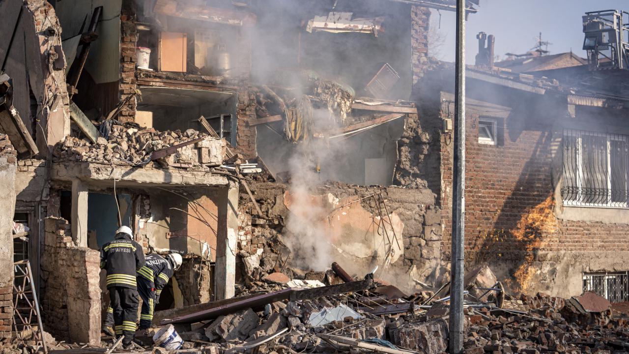 İtfaiye ekipleri hem evde hem de patlama sonrası ikametin önündeki doğalgaz hattında meydana gelen yangına müdahale etti.
